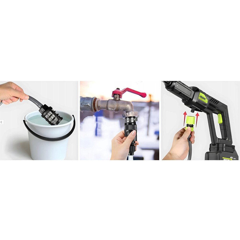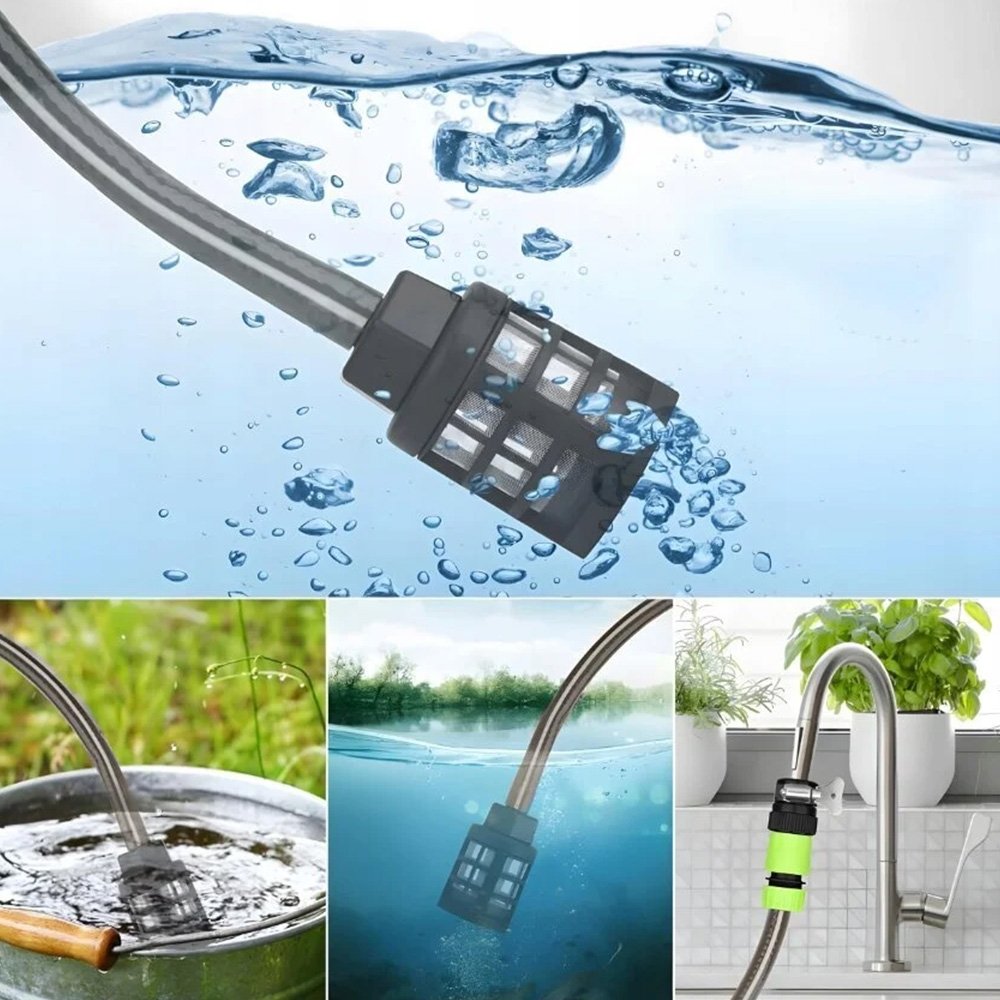 Komplekte esanti vandens žarna su filtru leidžia naudoti vandenį iš kibiro, talpos ar kitų vandens šaltinių. Tai ypač patogu sode, garaže ar kelionėse.