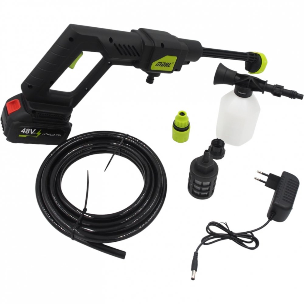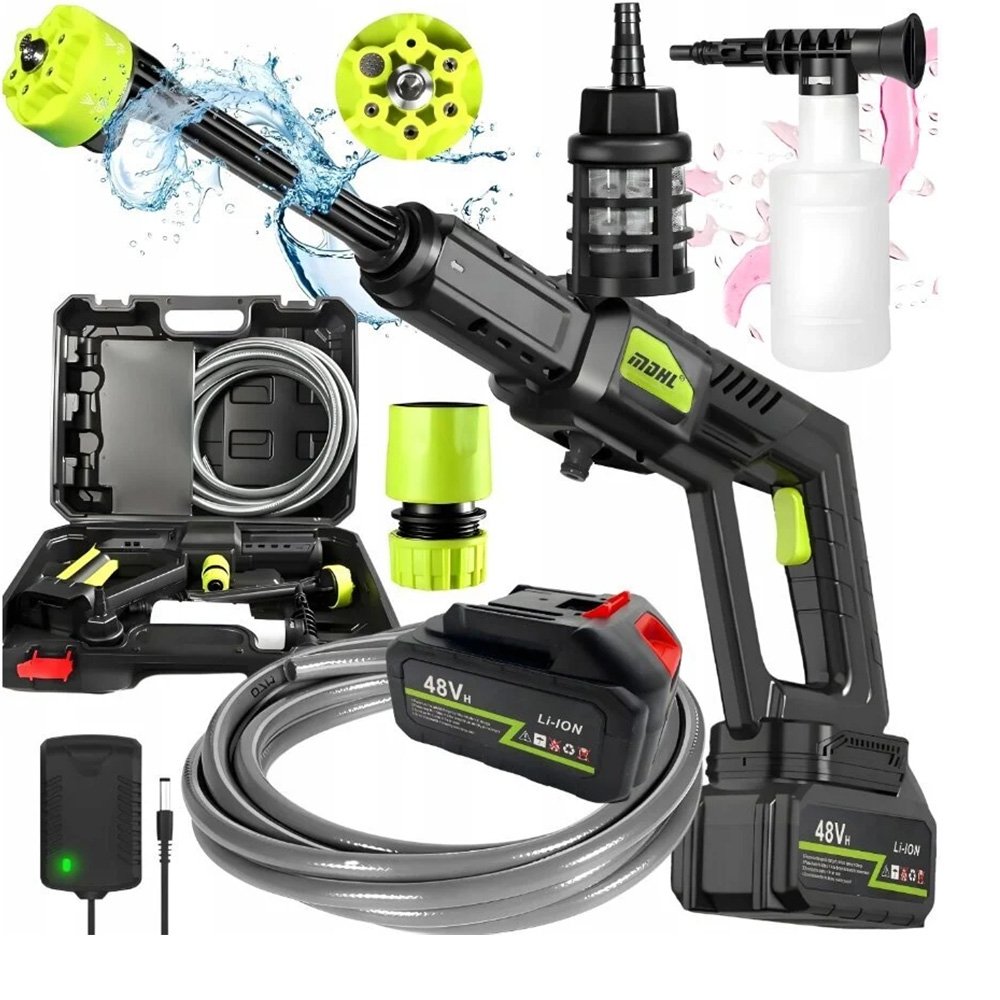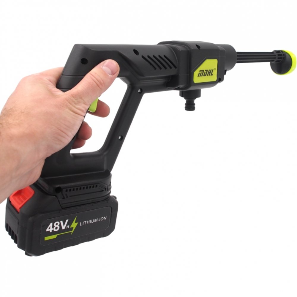 Akumuliatorinis aukšto slėgio plovimo įrenginys – patogus ir universalus sprendimas automobilių, dviračių, kiemo dangos ar sodo įrankių plovimui. Belaidė konstrukcija ir 48 V Li-ion akumuliatorius leidžia dirbti bet kur – net vietose, kur nėra elektros ar vandentiekio jungties.