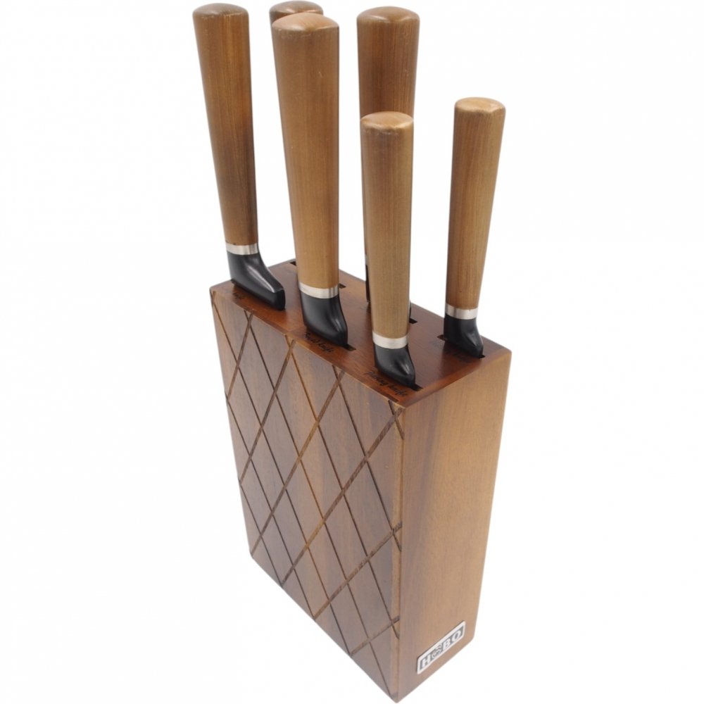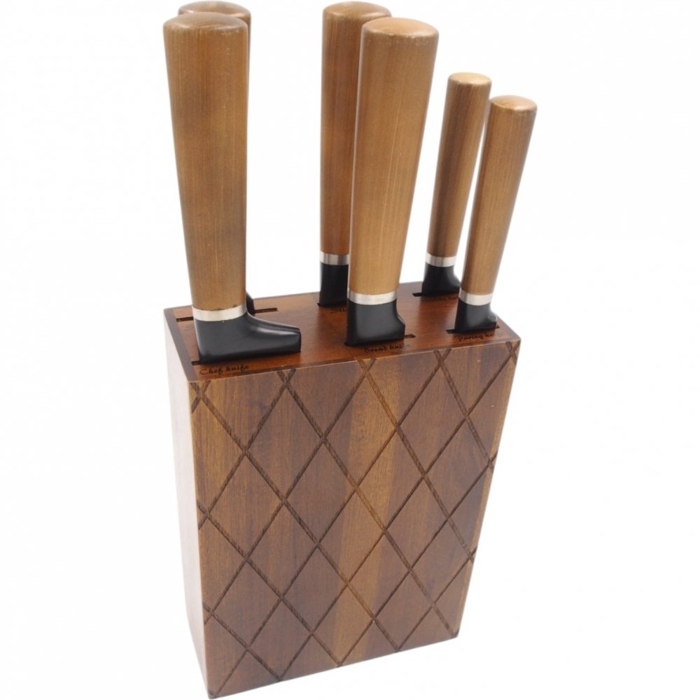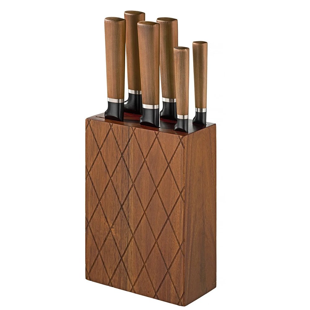 Virtuvinių peilių rinkinys su akacijos medžio stovu, 7 vnt.
