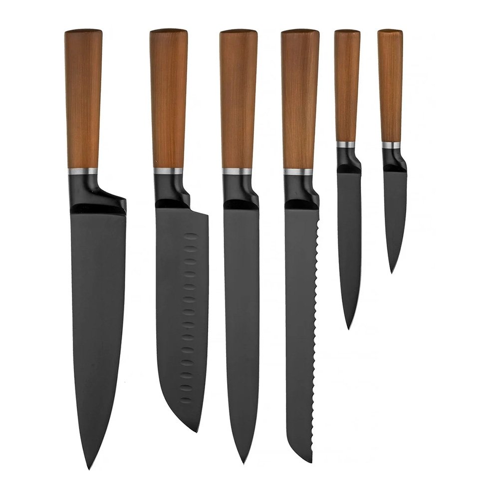 Peiliai pagaminti iš nerūdijančio plieno, todėl yra atsparūs rūdims, ilgai išlaiko aštrumą ir puikiai tinka įvairiems virtuvės darbams. Ergonomiškos rankenos su medžio imitacijos dizainu užtikrina patogų suėmimą ir stabilų valdymą pjaustant.