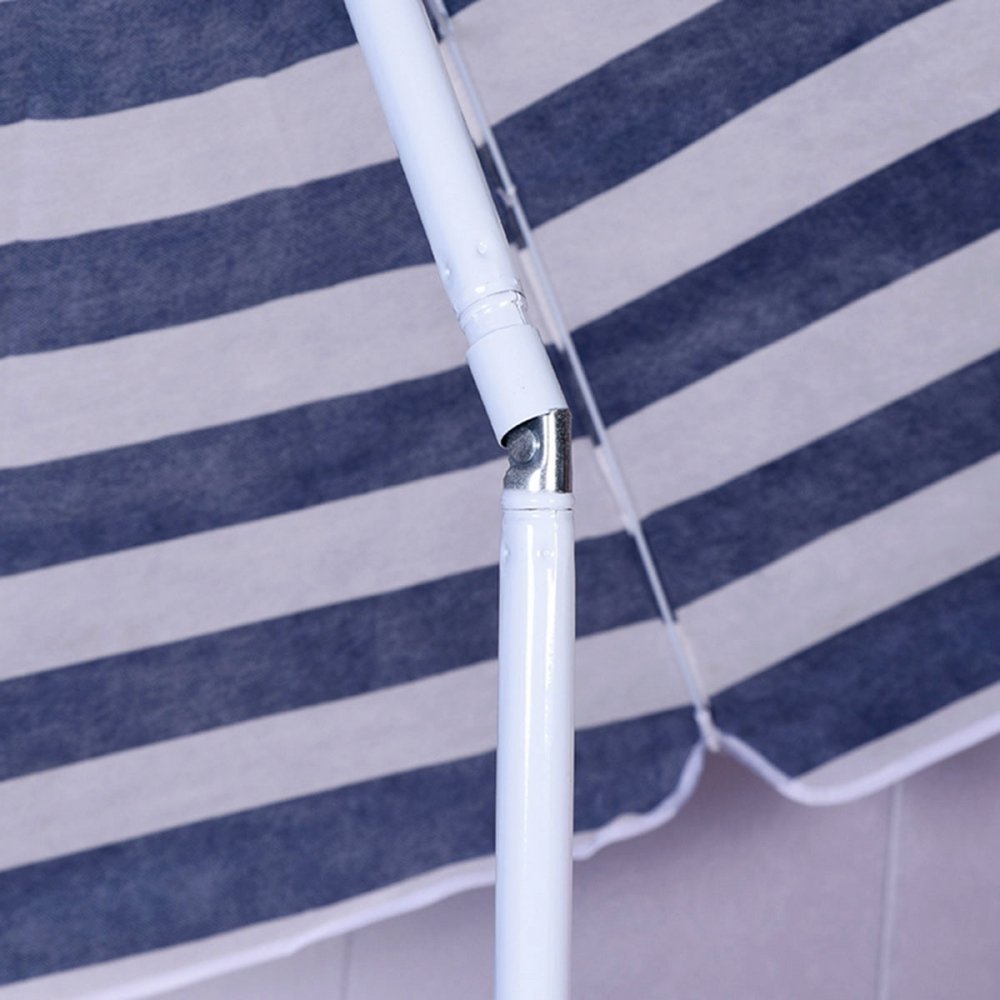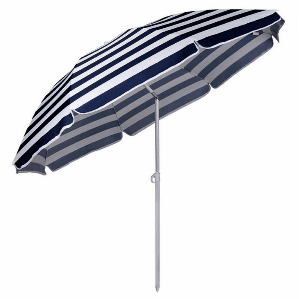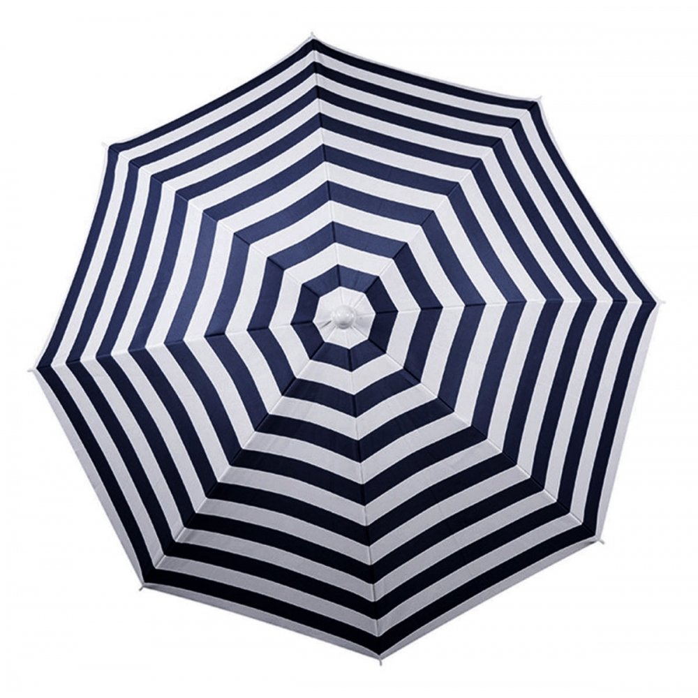 Tvirta dviejų dalių metalinė rankena užtikrina stabilumą, o smailus rankenos galas leidžia skėtį lengvai įsmeigti į smėlį ar gruntą. Jei reikia, skėtį galima statyti ir į specialų stovą (stovas nepridedamas).