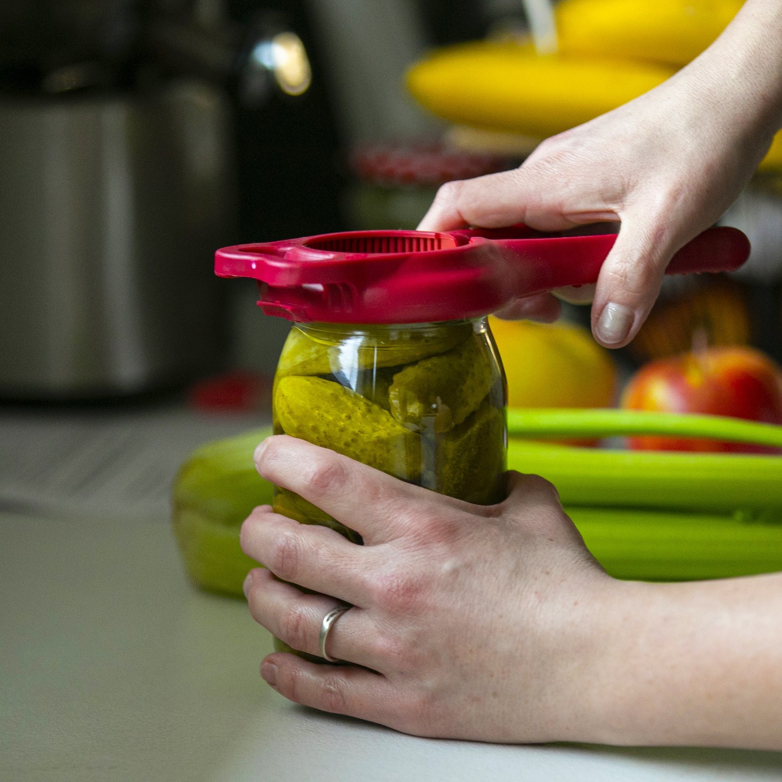 • Lengvai atidaro sandariai užsuktus stiklainius